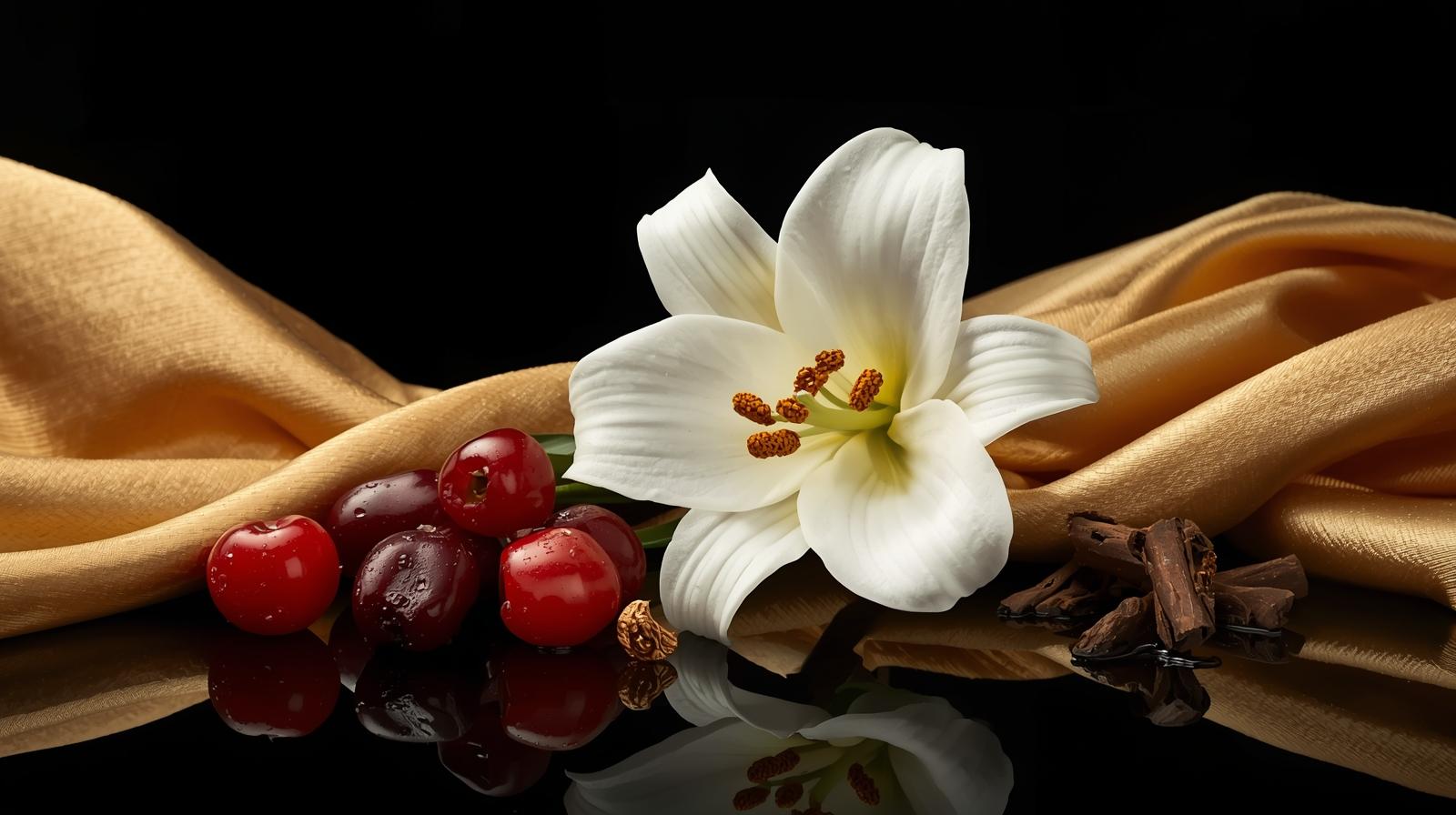 A captivating blend of juicy red berries, delicate lily, and creamy vanilla, resting on a warm, sensual base of amber, cedar, and musk. It balances fresh sweetness with elegant warmth, creating a sophisticated and unforgettable scent perfect for both everyday wear and special occasions.